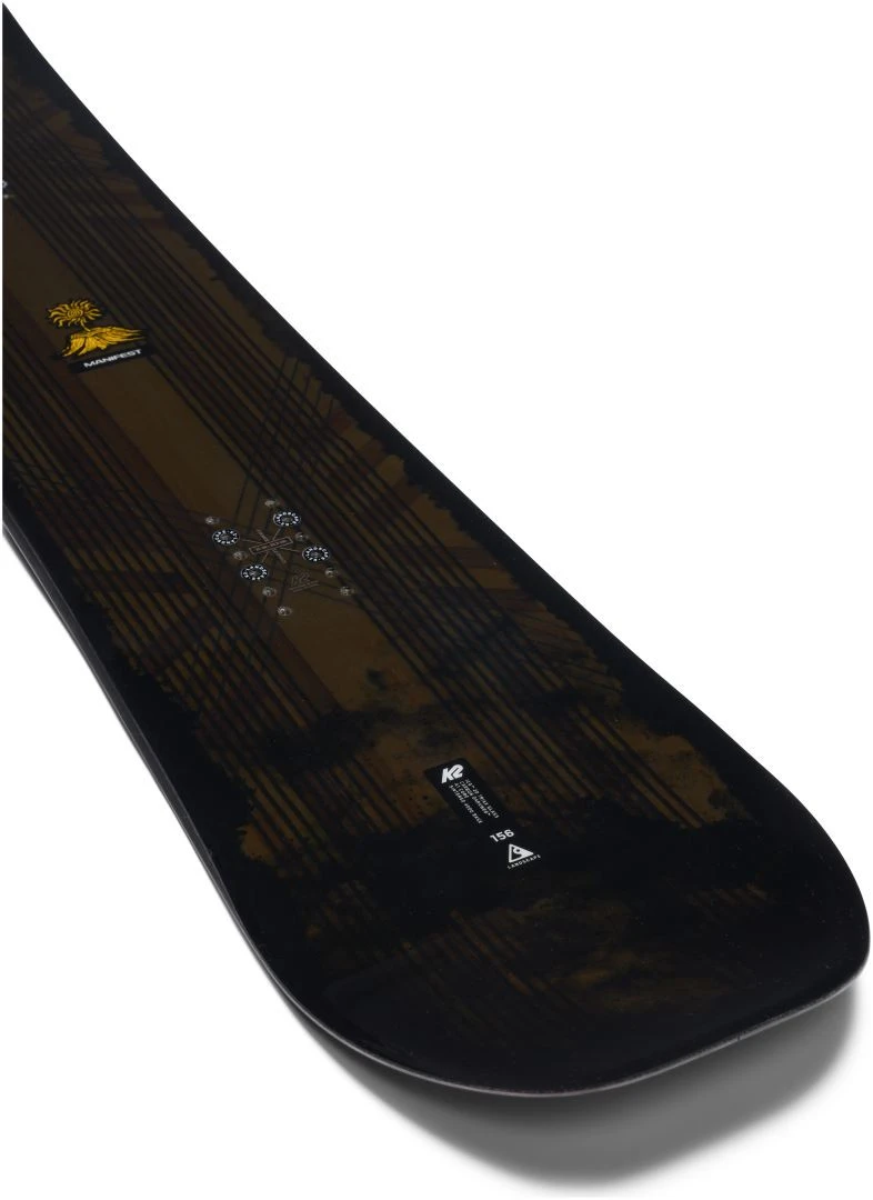 Das K2 Manifest ist ein Medium flex All-Mountain Freestyle Board, dass super ist vielseitig für Reiter mit einem verspielten Stil. Volle Tage im Park, Fahrt durch den Ort oder surfy Linien in dem Pulver zu suchen, dann ist es spielerische Leichtigkeit für die Manifest. Die Richtungsdoppel Form macht die Manifest Schalter ist einfach zu fahren und Parkschalter Länder und Pulver..