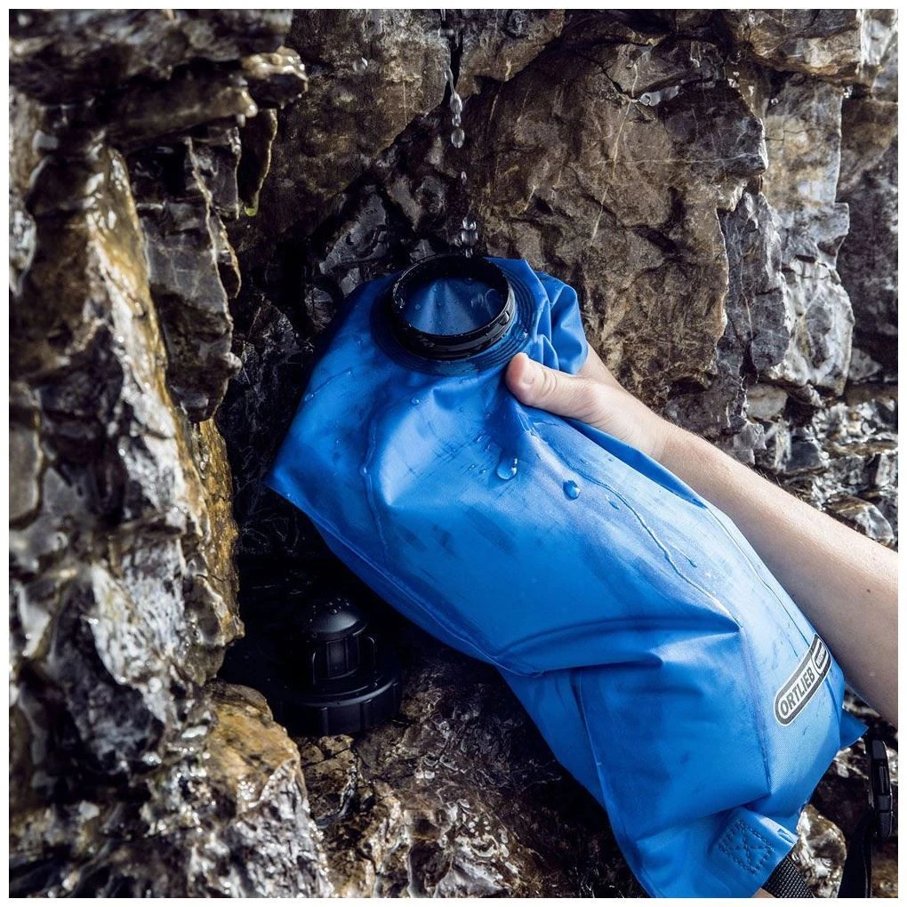 Het is afgelopen met onhandige waterflessen of jerrycans! Deze compacte waterbuidel van Ortlieb is voorzien van handige lusgrepen. waarmee de buidel tevens aan de rugzak kan worden bevestigd. De buitenkant is slijtvast en waterdicht. de binnenlaag is geschikt voor drinkwater. Opmerking: de waterzakken zijn uitsluitend bedoeld voor het meenemen van water (tot maximaal 60 graden: niet vullen met alcoholische. suiker- en zuurhoudende dranken). De opgevulde zak niet te lang in de hitte laten staan en het water zo vaak mogelijk vervangen. Na gebruik drogen en niet afgesloten bewaren. De binnenkant reinigen met reinigingstabs voor kunstgebitten. de buitenkant behandelen met warm water. een borstel en neutrale zeep. Het ventiel moet regelmatig worden schoongemaakt.